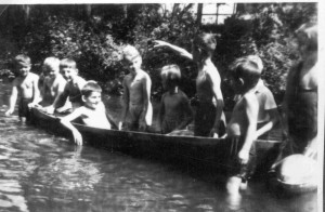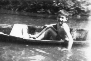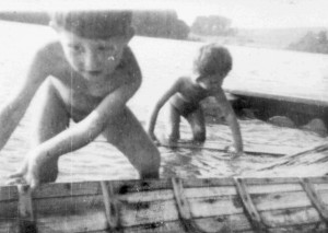 1950 byly mi 4 roky. První rodinná dovolená na kterou si vzpomínám. Přesněji utkvěly mi v paměti jen kratičké střípky vzpomínek, které vyplavali napovrch teprve při pokusu uspořádat staré rodinné fotografie. Táta zařídil rodinnou dovolenou v malé vesnici Medlov na Českomoravské vysočině. Vzpomínám si, že jsme bydleli v malé chatičce na břehu rybníka a že mi ten rybník připadal obrovský. Cachtali jsme s bráškou na mělčině, maminka seděla na břehu a hlídala nás, táta si maloval opodál – možná, že zrovna kreslil naši rodinnou idylku. Když se dnes 60 let poté probírám tátovým malířským archivem, jsou tu desítky skic právě těchto vzácných okamžiků. Ale, vrátím se ke vzpomínkám. Na břehu jsme s bráškou objevili loď a hned bylo vzrůšo…Maňásek, jak táta pojmenoval loďku, byl akorát tak velký pro malé kluky jako jsme byli my dva. Utkvěla mi v hlavě asi jinak banální příhoda, strašně jsem se vyděsil když jsem se na Maňásku ocitl několik metrů od břehu – banální příhoda, máma a táta nás společně hlídali, ale tenkrát jsem měl asi šok jak jsem řval, protože táta mě hned přišel zachránit.