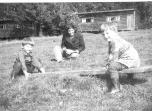 1956, zleva J.Musil, K.Šlengr (můj bratr) 1956-7, F.Macák a děti Alenka a Petr